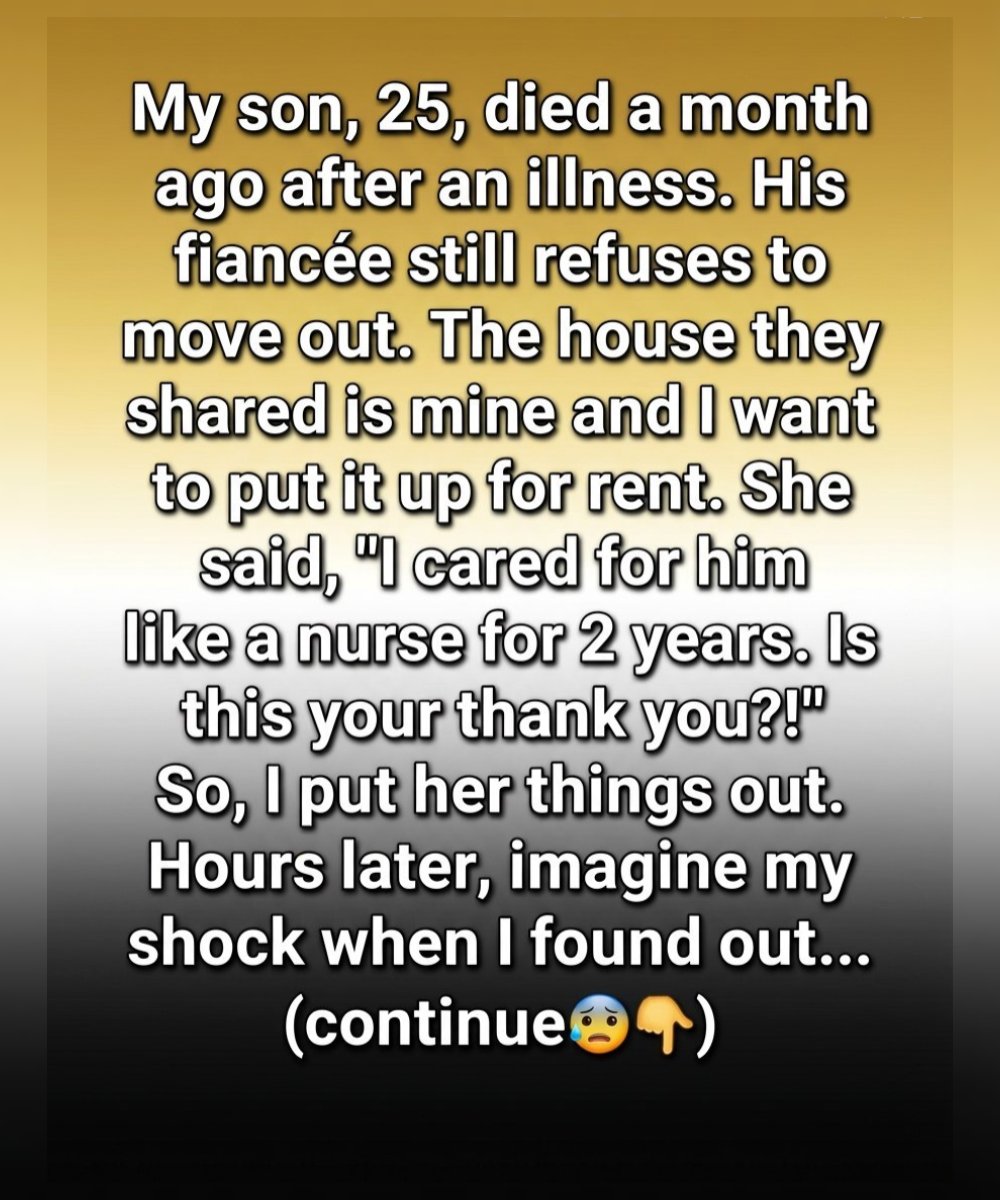 Grief hollowed me out in ways I didn’t recognize myself. In the middle of that fog, his fiancée was still living in the house they had shared—a house that legally belonged to me. I wanted to rent it out, partly for financial reasons, but mostly because walking past his empty room felt unbearable. When I told her she needed to leave, she looked at me with red, sleepless eyes and said, “I took care of him for two years like a nurse. Is this really your gratitude?” I didn’t answer. I put her belongings outside instead. At the time, I thought I was protecting myself. I had no idea my sorrow was blinding me to everything she had quietly done.