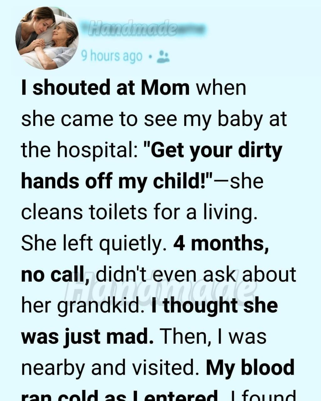 The day my mother came to the hospital to see my newborn should have been a moment of joy. Instead, it became the cruelest memory I carry. I was exhausted, overwhelmed, and fiercely protective of my baby. When she reached out, her hands trembling with anticipation, I snapped.