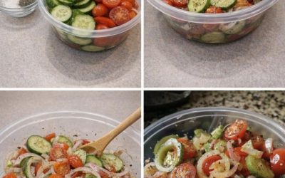 3 medium cucumbers, peeled and sliced 1/4 inch thick 1 medium onion, sliced and separated into rings 3 medium tomatoes,…