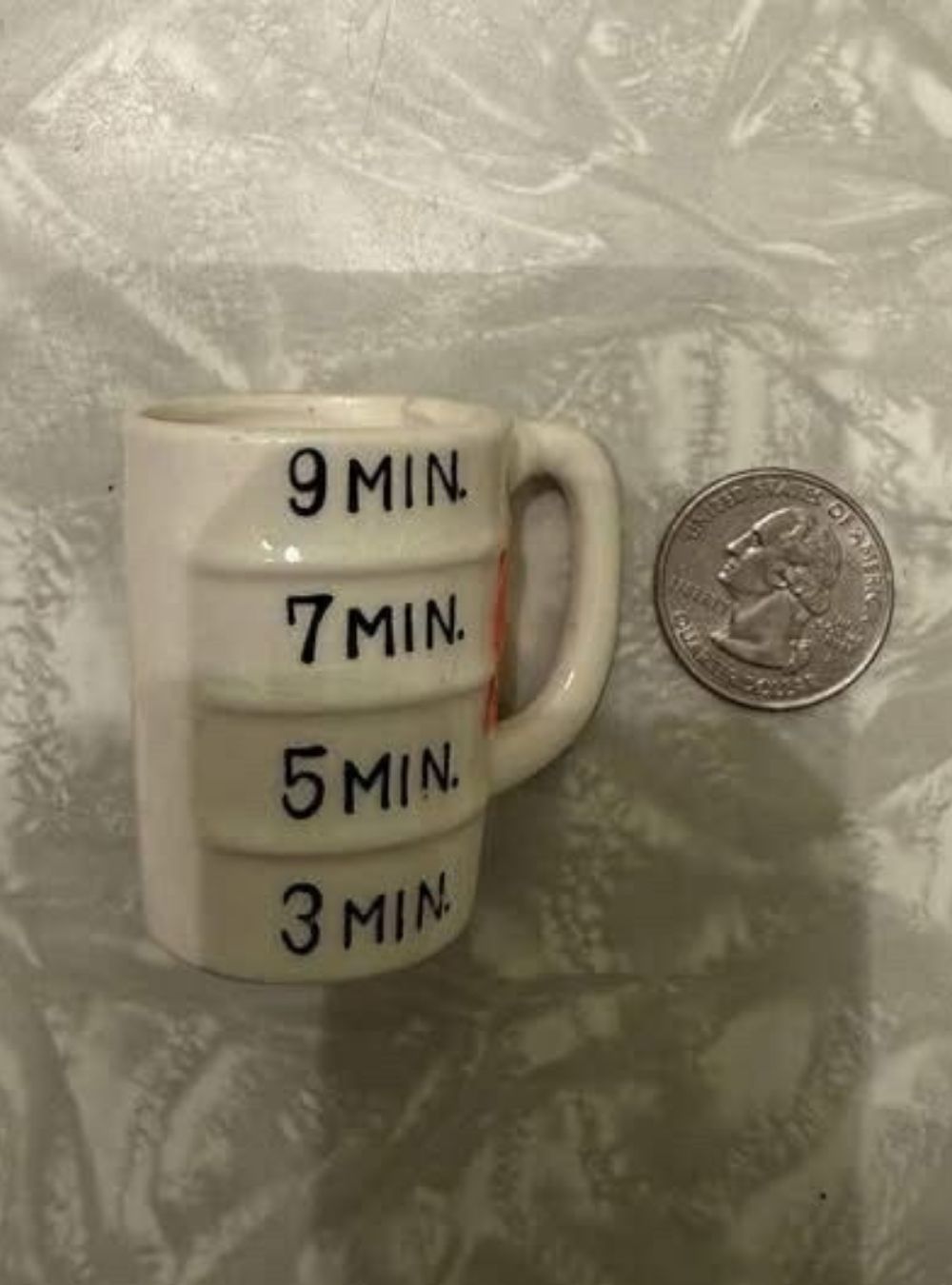 At first glance, it looks like a miniature coffee cup. Small handle, compact size, numbers printed around the outside. It’s easy to assume it’s a novelty espresso cup, a child’s toy dish, or maybe even a quirky decorative piece. But this tiny ceramic “mug” actually had a very practical and surprisingly clever purpose.
